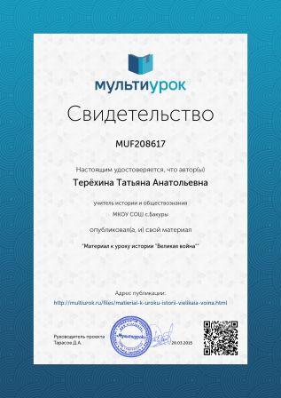 Терёхина Татьяна Анатольевна учитель истории и обществознания МОУ СОШ с.Бакуры